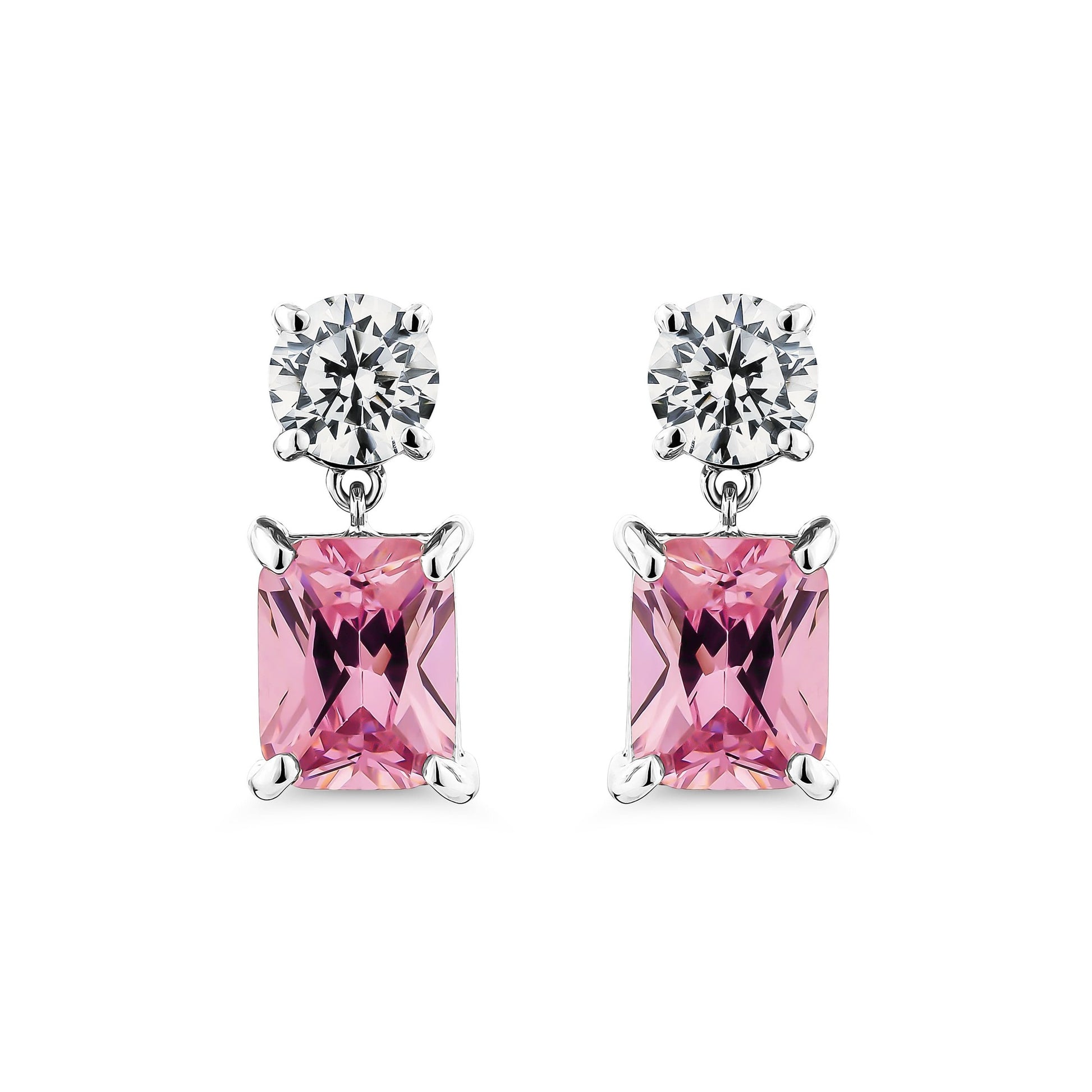 Each version of our Color Radiance Drops features a 6mm brilliant-cut Lab-Created Diamond Simulant above a radiant-cut 9x7mm stone in your choice of clear, aquamarine, pink, or light yellow. All prong-set in rhodium-plated sterling silver.